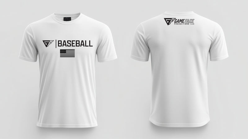 Crafted with performance in mind, the lightweight, breathable fabric ensures you stay cool, while moisture-wicking technology helps manage sweat during those nail-biting moments. Available in crisp white, this shirt can be customized with the Game Face logo and your choice of sport—Baseball, Basketball, Football, or Soccer